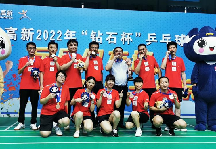 為迎接中鎢高新第二次黨代會的召開,促進成員企業(yè)文化交流,營造“中鎢一家親”的良好氛圍,中鎢高新于6月26日至29日在株洲硬質合金公司體育中心舉辦了2022年“鉆石杯”乒乓球比賽。比賽設男女混合團體賽和領導干部二人制團體賽兩個項目。公司各單位的職工及領導組成的13人“株洲鉆石”代表隊在工會主席韓東的帶領下參與了本次比賽。中鎢高新各直管企業(yè)共14支代表隊、近200名運動員參與了這場國球運動盛宴。