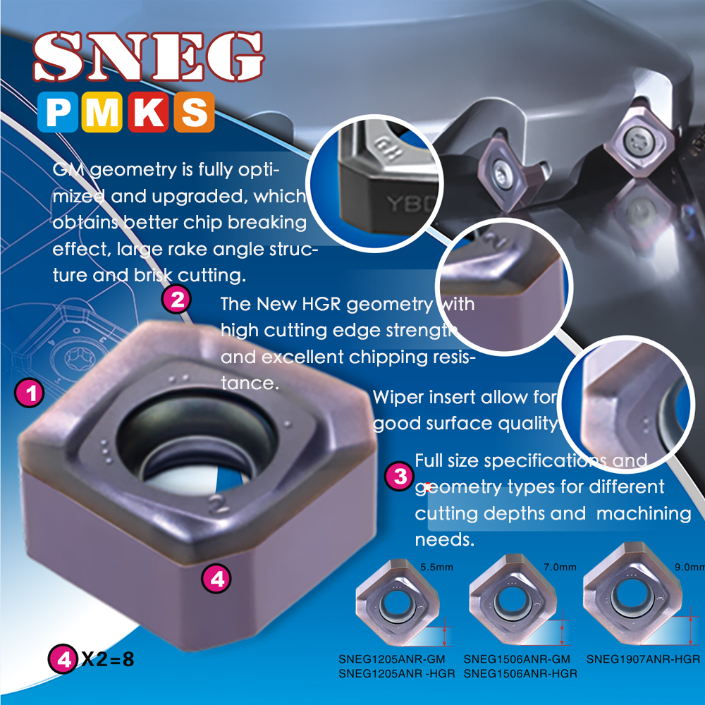 GM geometry is fully optimized andupgraded, which obtains better chip breaking effect, large rake angle structureand brisk cutting.