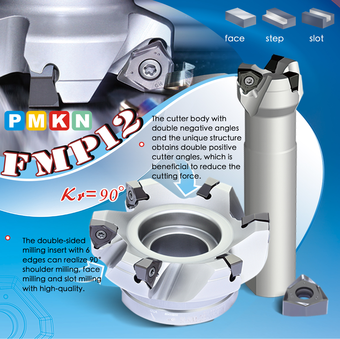 For face machining, step machining, slot milling and side milling